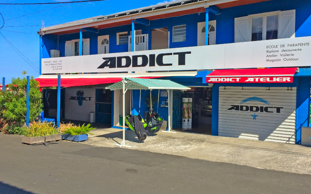 Idéalement situé sur Saint Leu à La Réunion, Addict Parapente est un centre de vol libre tant pour découvrir l’activité au travers de vol en parapente, que pour se former et devenir un pilote de parapente (EFVL). Après Bourbon Parapente de 1997 à 2007, Addict Parapente, Ecole FFVL depuis 2010,ouvre ses portes, doté d’un atelier de contrôle des ailes, d’un magasin d’équipement et d’un espace d’accueil et de restauration.