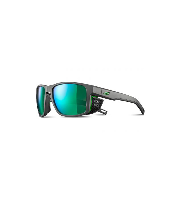 Julbo dédie aux zappeurs du cross-mountain un objet de style pour exprimer à la fois leur esprit d'ouverture et leur technicité. Lunette tous terrains et toutes protections, Shield ouvre le champ de vision et le champ des possibles : verres REACTIV photochromic, pour une vision parfaite, branches galbées antidérapantes avec Grip nose pour rester accrochées sur la tête quel que soit le mouvement. Sa ventilation Air flow et ses coques amovibles textiles « soft shield», douces au toucher, assurent un confort maximal.Sa forme rectangulaire élégante associe le style à toutes les audaces.